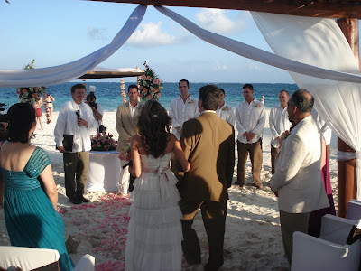 Notice the lady in the "unnecessary" bikini in the background near the water. The best man fianlly had to ask her to move so that she wouldn't be in the pictures.